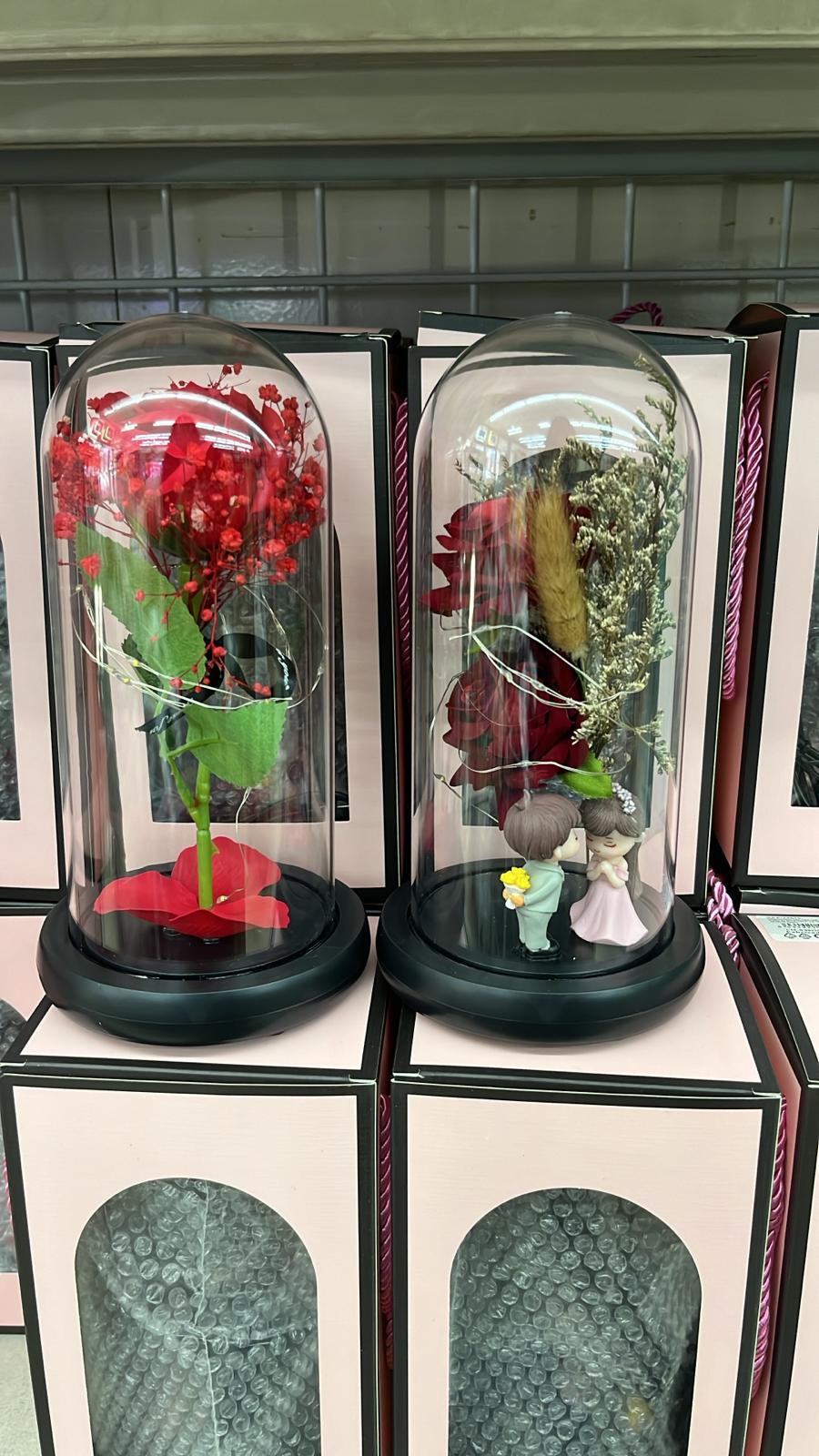 La cúpula no es desmontable, lo que garantiza la protección de la rosa. Para limpiarla, simplemente utiliza un paño suave y seco en el exterior del vidrio.